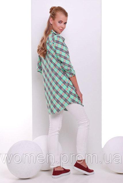 Ще один варіант «безразмерки» – сорочка з подовженою задньою частиною. Носити таку річ можна з брюками або легінсами, при бажанні доповнюючи тонким поясом, щоб підкреслити талію.