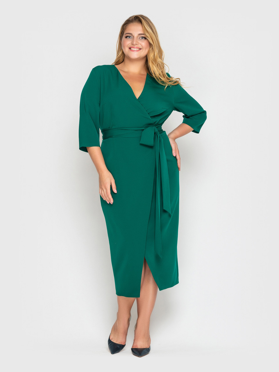 Шикарна сукня батал міді з запахом жіноча у великих розмірах